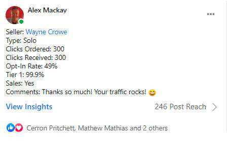 - Account area to see all solo ad purchases and tracking